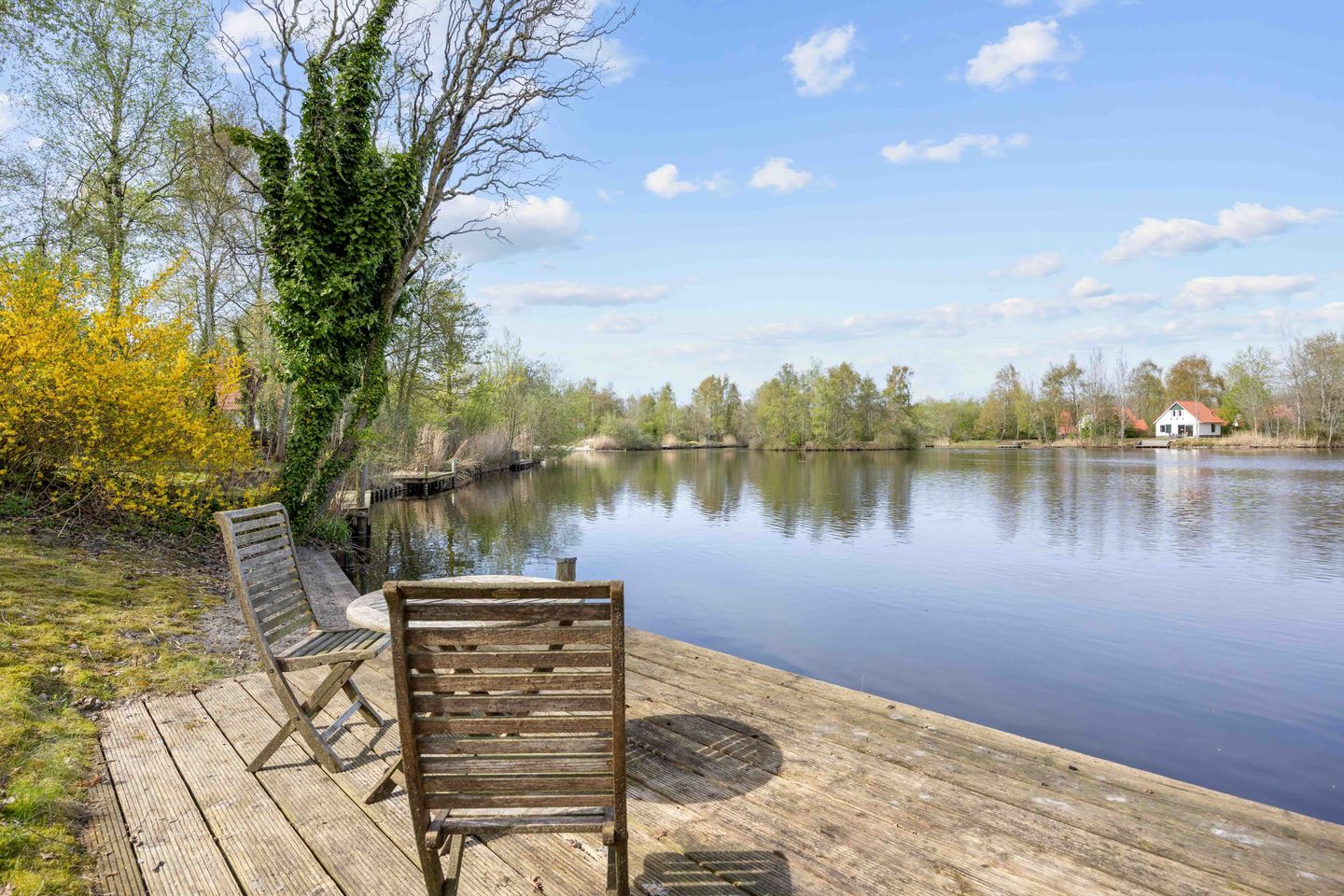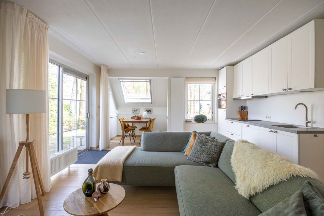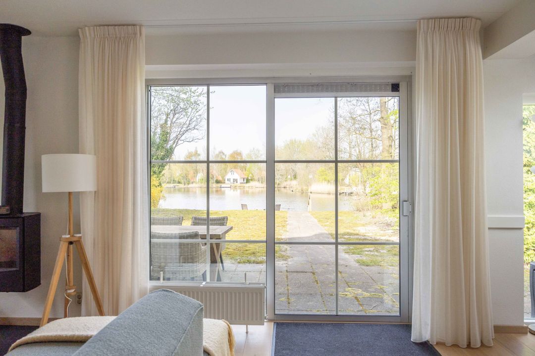 Het lijkt bijna alsof je ergens in Zweden bent bij deze luxe, prachtig aan water gelegen, op een ruime kavel van 731 m² op recreatiepark Suyderoogh, vrijstaande, 6-persoons, in 2020 geheel gerenoveerde RECREATIEWONING met slaapkamer op de begane grond, vernieuwde keuken, toilet en badkamer, 2 slaapkamers en 2e toilet op de verdieping. In de eethoek van de woonkamer met fraaie eiken parketvloer biedt het grote dakraam een fijne hoeveelheid extra daglicht, de hangende houtkachel extra comfort op killere dagen. In de inpandige berging bevindt zich een witgoed aansluiting. De vrijstaande schuur (9 m²) biedt extra ruimte voor stalling van bijvoorbeeld fietsen. De woning is sinds de renovatie niet verhuurd geweest.